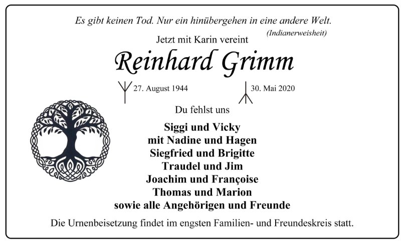 Unvergessen, liebenswert, gerecht, freiheitsliebend, fürsorglich Reinhard